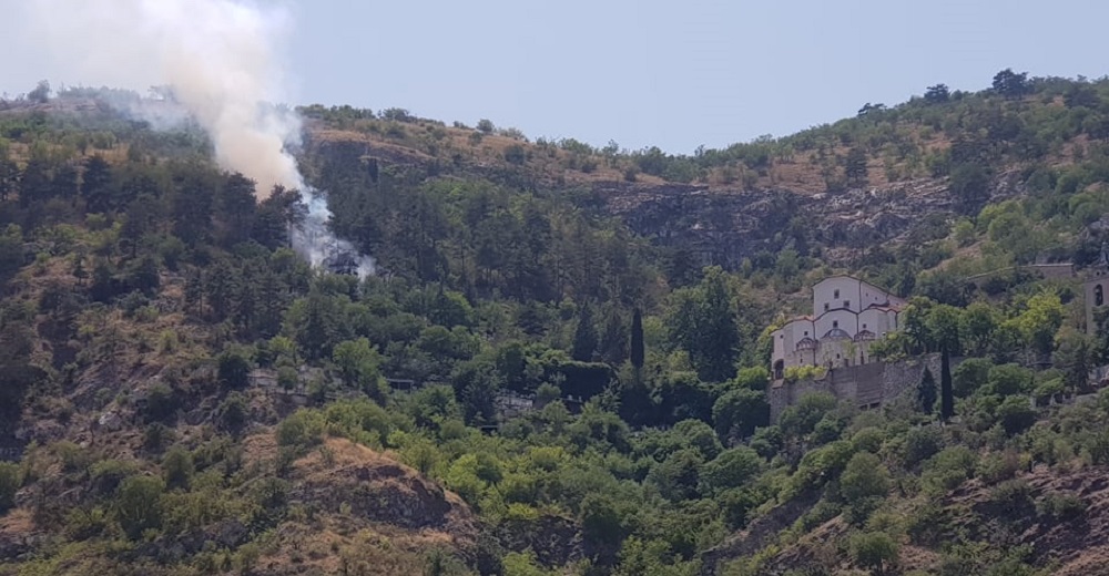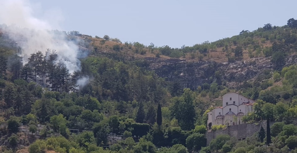 Во овие моменти, во близина на црквата Св. Пантелјмон избувна пожар. Горат дрвјата кои се во непосредна близина на црквата.