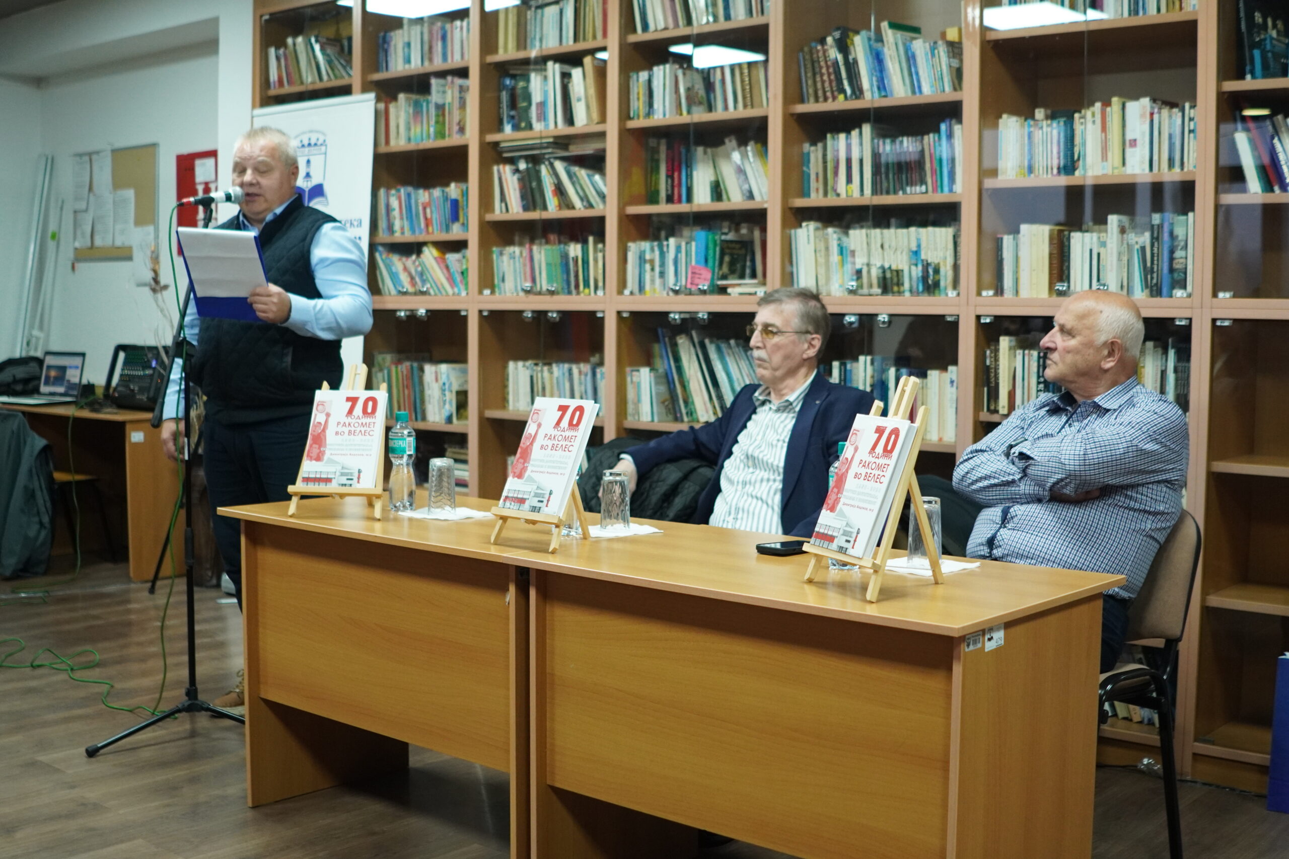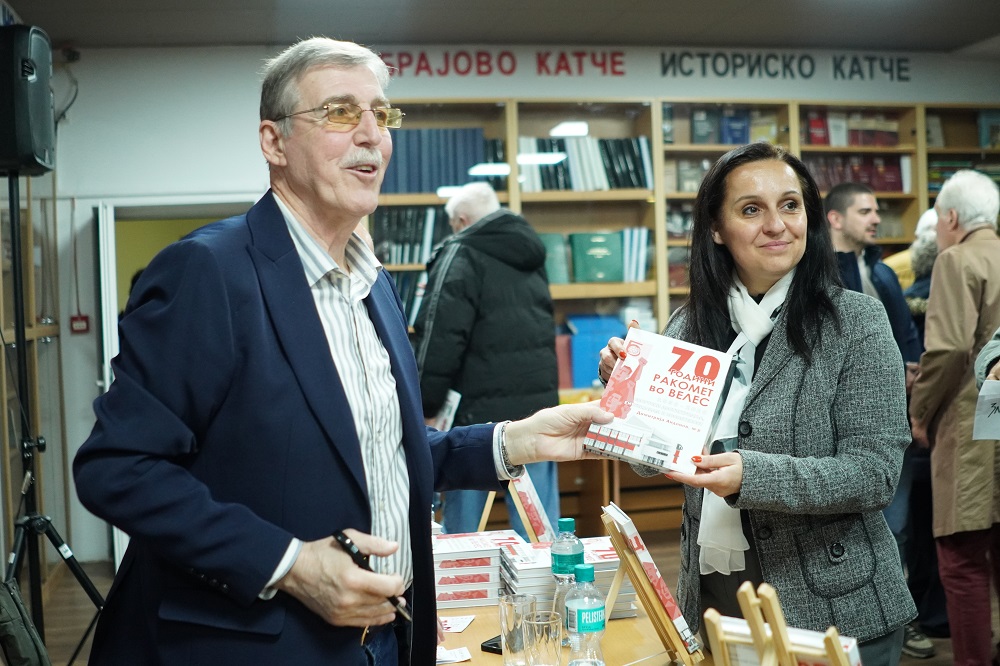 Во Библиотека „Гоце Делчев“ синоќа беше промовирана книгата „70 години ракомет во Велес“, значајно дело на м-р Димитрија Андонов, кое претставува сеопфатен приказ на развојот, успесите и луѓето што ја испишувале историјата на ракометот во градот.