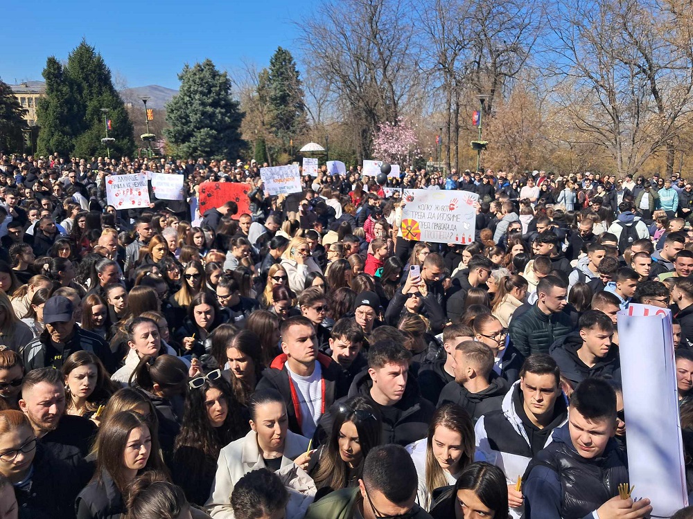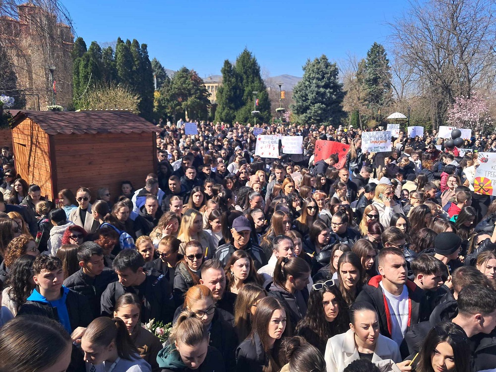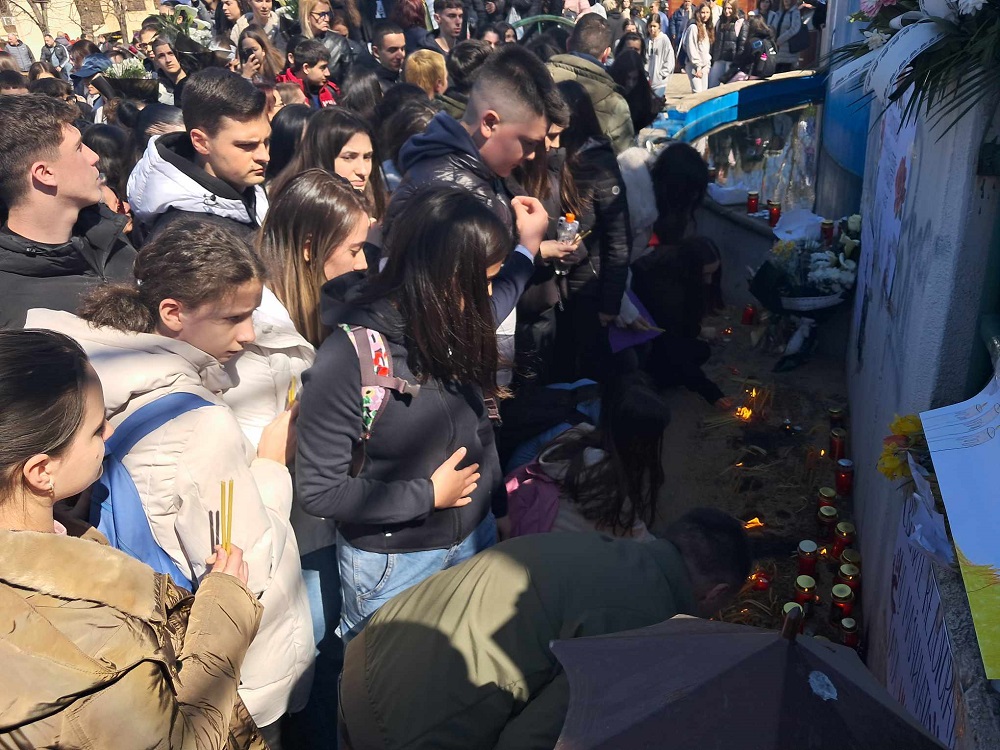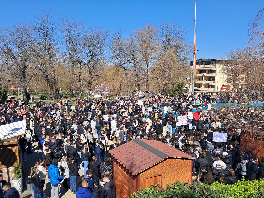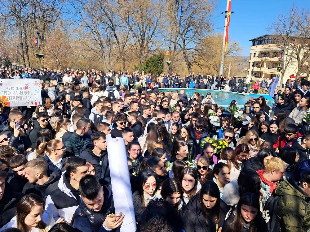 Младинскиот парк беше претесен да ги собере велешките средношколци кои се собраа во голем број и палеа свеќи, положува цвеќе пред параклисот и со молчење изразија сочувство до семејствата на настраданите во кочанската трагедија.