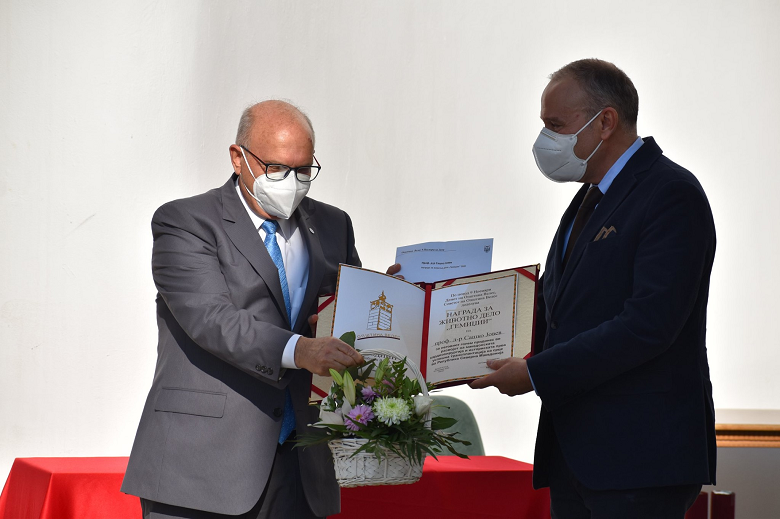 Доктор Јовев наградата ја прими на одбележувањето на 76-годишнината од ослободувањето на Велес од фашистичкиот окупатор, кое се одржа на платото пред Спомен Костурницата, на манифестација организирана според протоколите за заштита од ковид-19.