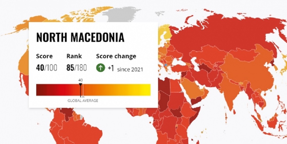 Македонија со индекс 40 се најде на 85 место во денеска објавениот Извештај за перцепцијата на корупцијата на Транспаренси интернешнал (ТИ). При тоа се наведува дека недостигот на интегритет при избор на клучни фигури во судството и неефикасното водење на тековните случаи против корупција ги поткопува напорите во вистинска насока на властите. Македонија лани имаше индекс 39 и беше на 87 место.