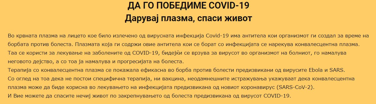 Институтот за трансфузиона медицина на ја објави постапката и апликацијата за оние кои сакаат да донираат крвна плазма.